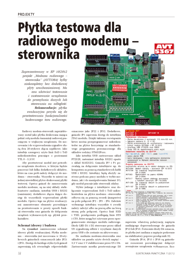 AVT5367 Płytka testowa dla radiowego modemu sterownika