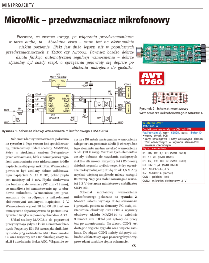 AVT1760 A MicroMic - przedwzmacniacz mikrofonowy - płytka drukowana