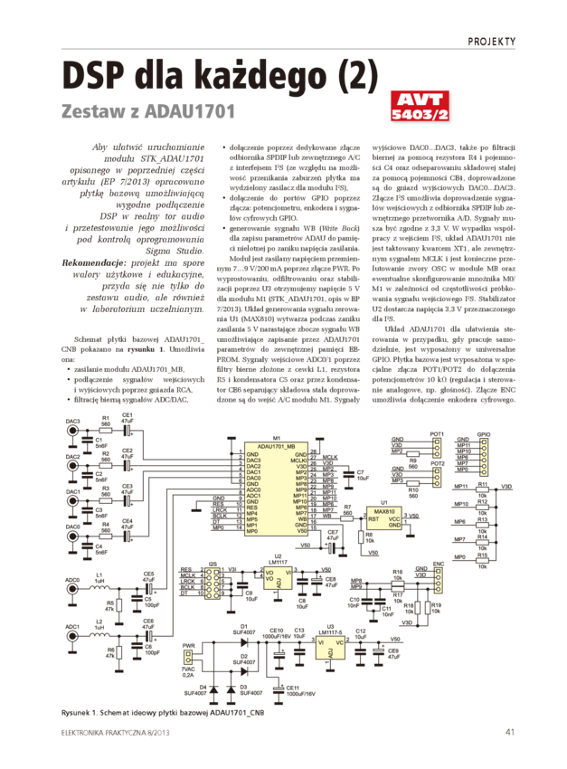 AVT5403 AVT5403/2 A Płytka bazowa dla ADAU1701 - płytka drukowana