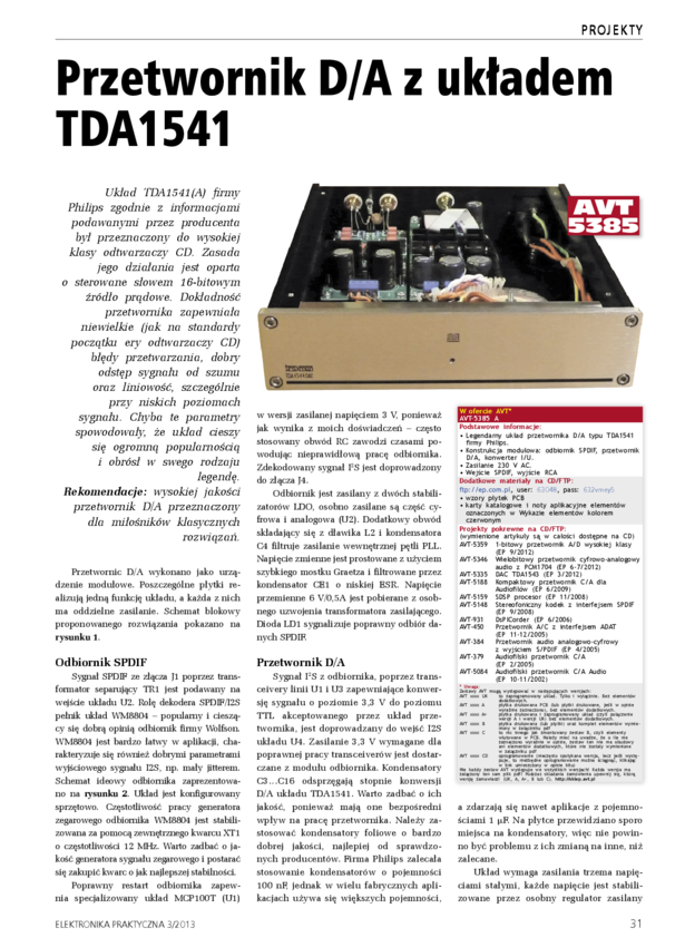 AVT5385 A Przetwornik D/A z układem TDA1541 - płytka drukowana