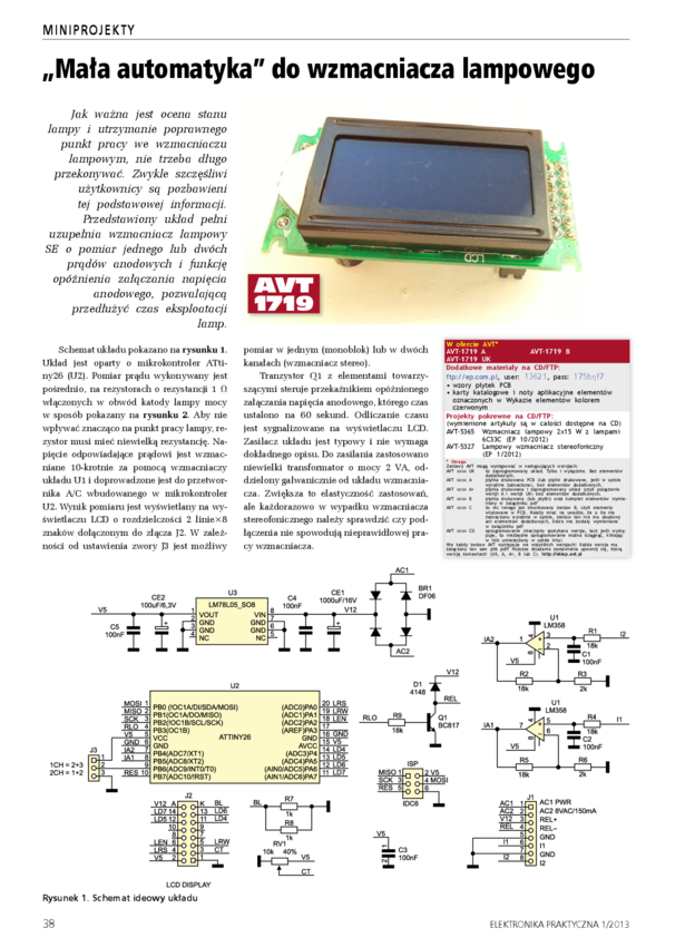 AVT1719 Mała automatyka do wzmacniacza lampowego