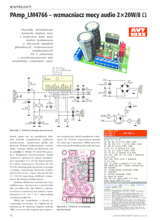AVT1833 PAmp_LM4766 - wzmacniacz mocy audio 2 x 20W 8om