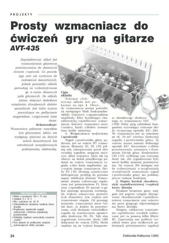 AVT435 Prosty wzmacniacz do ćwiczeń gry na gitarze