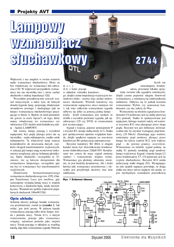 AVT2744 A Lampowy wzmacniacz słuchawkowy - płytka drukowana