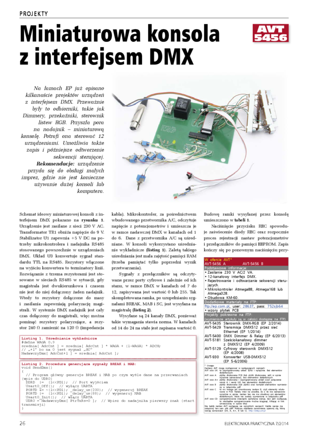 AVT5456 Miniaturowa konsola z interfejsem DMX