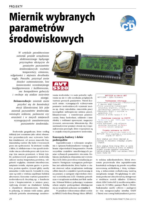AVT5328 A Miernik wybranych parametrów środowiskowych - płytka drukowana