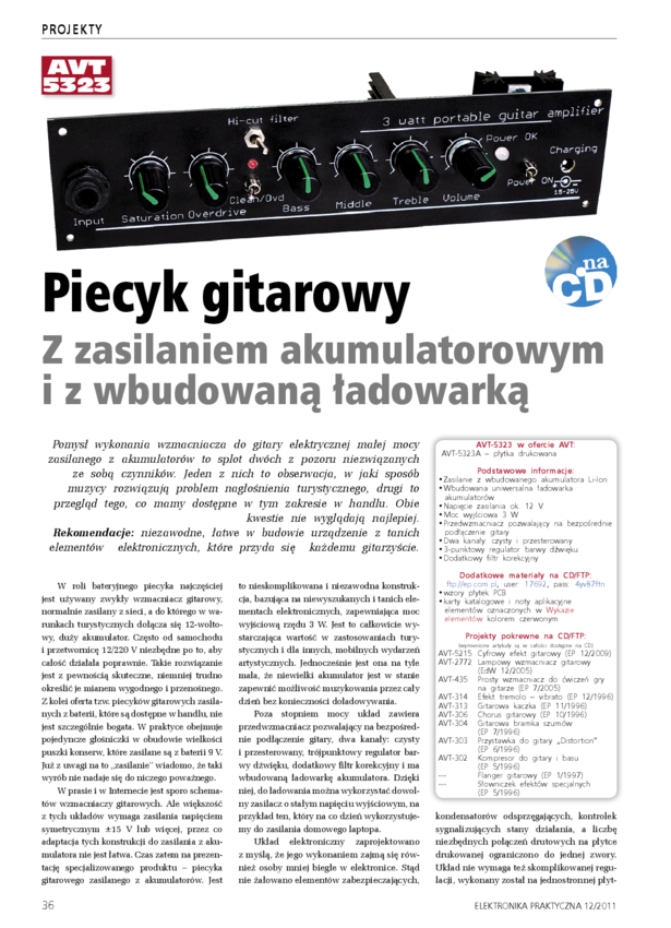 AVT5323 B Piecyk gitarowy z zasilaniem akumulatorowym - zestaw do samodzielnego mon...