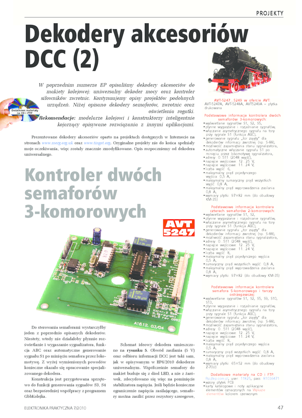 AVT5247 A+ Kontroler dwóch semaforów 3 komorowych - płytka drukowana i zaprogramowany układ