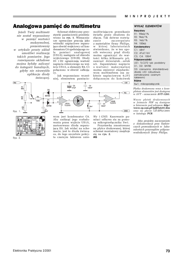 AVT1295 A Analogowa pamięć do multimetru - płytka drukowana