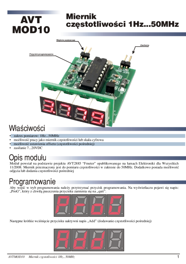 AVTMOD10 Miernik częstotliwości 1Hz...50MHz
