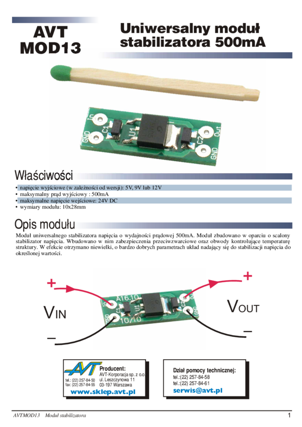 AVTMOD13/9 Uniwersalny moduł stabilizatora 9V 0.5A