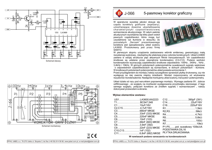 J066 J-066 5-pasmowy korektor graficzny (eqalizer)
