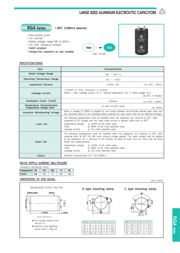 RGA2LLG152M, RGA2LLG222M, RGA2LLG272M
