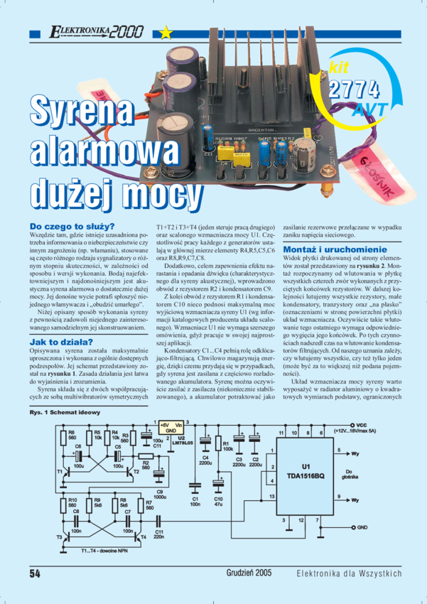 AVT2774 A Syrena alarmowa dużej mocy - płytka drukowana