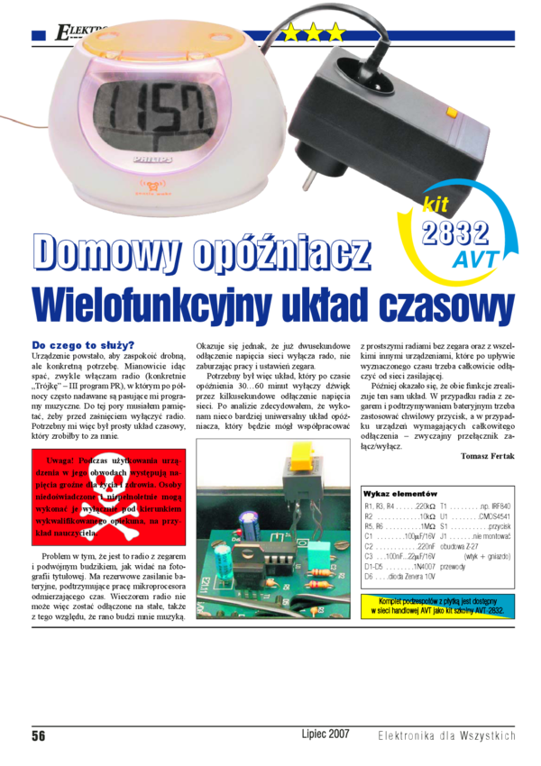 AVT2832 B Wielofunkcyjny układ czasowy - zestaw do samodzielnego montażu