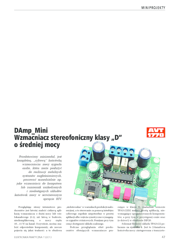 AVT1778 A Wzmacniacz stereofoniczny klasy D o średniej mocy - płytka drukowana