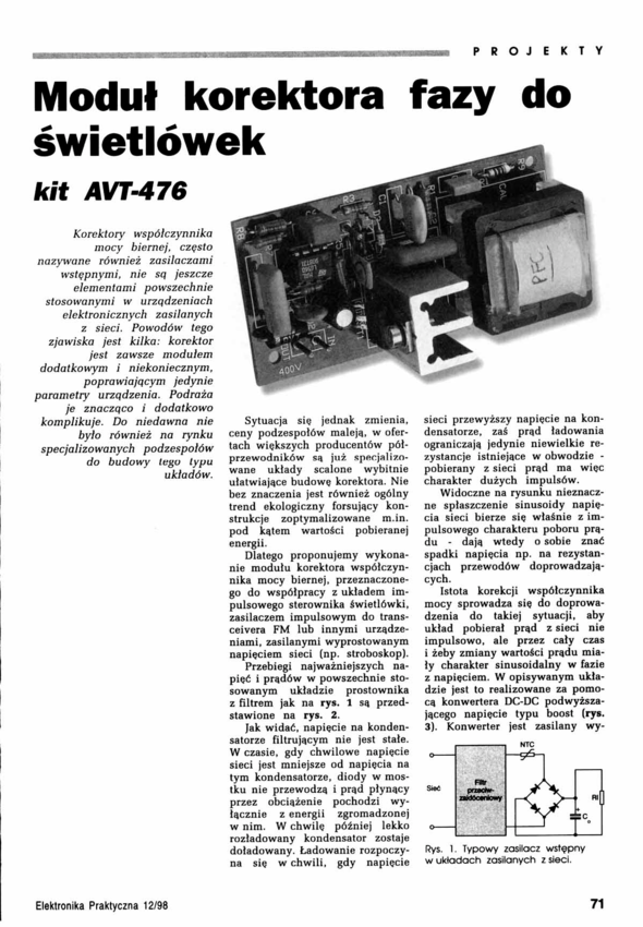 AVT476 A Moduł korektora fazy do świetlówek - płytka drukowana