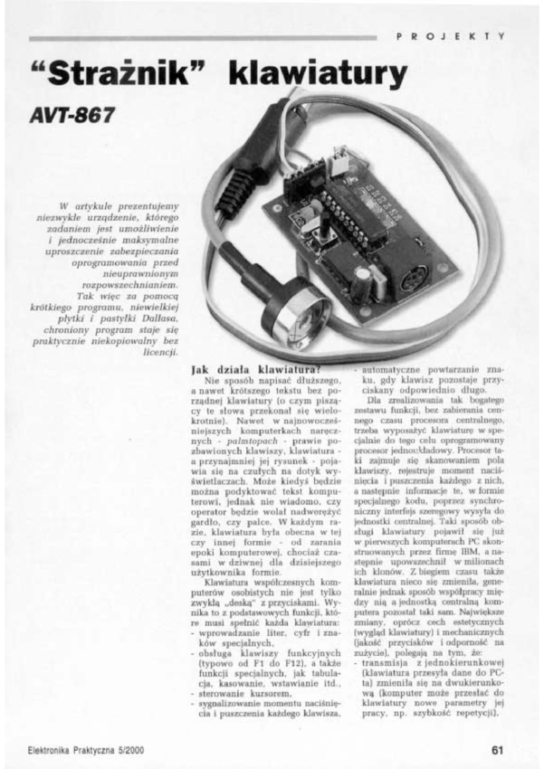 AVT867 A+ Strażnik klawiatury - płytka drukowana i zaprogramowany układ