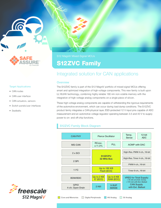 S12ZVC: S12 MagniV Mixed-Signal MCU for CAN Applications