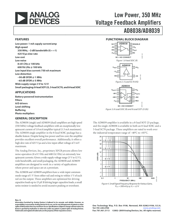 AD8039 Low Power, 350 MHz Voltage Feedback Amplifiers