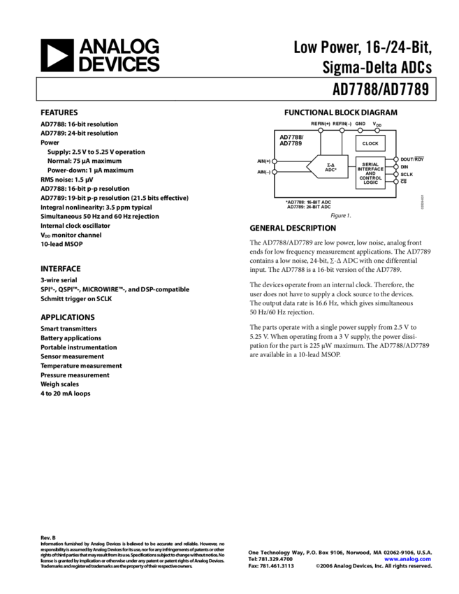 AD7788 16-Bit, Single-Channel, Ultra Low Power, Sigma Delta A/D Converter