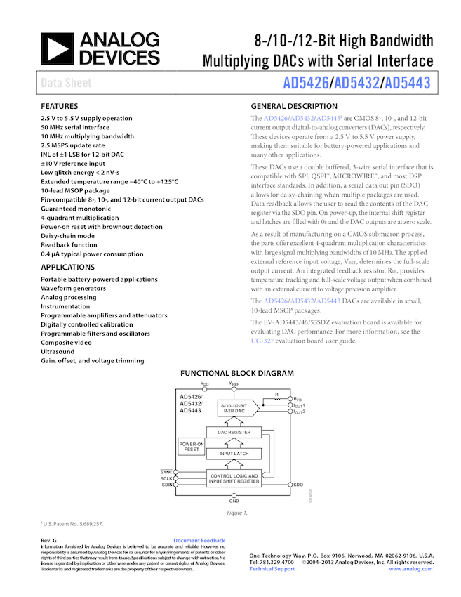 AD5426 8-Bit High Bandwidth Multiplying DACs with Serial Interface