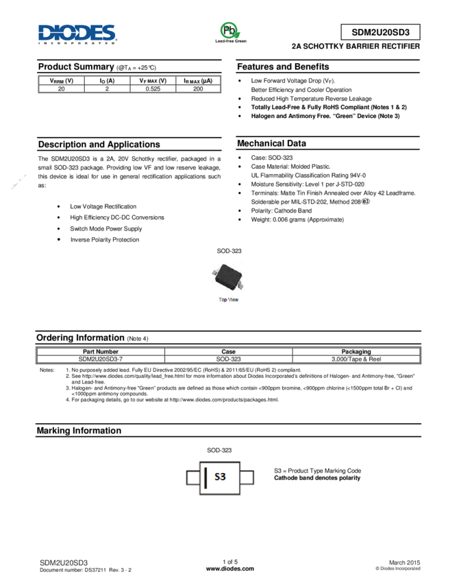 SDM2U20SD3 2.0A SURFACE MOUNT SCHOTTKY BARRIER RECTIFIER