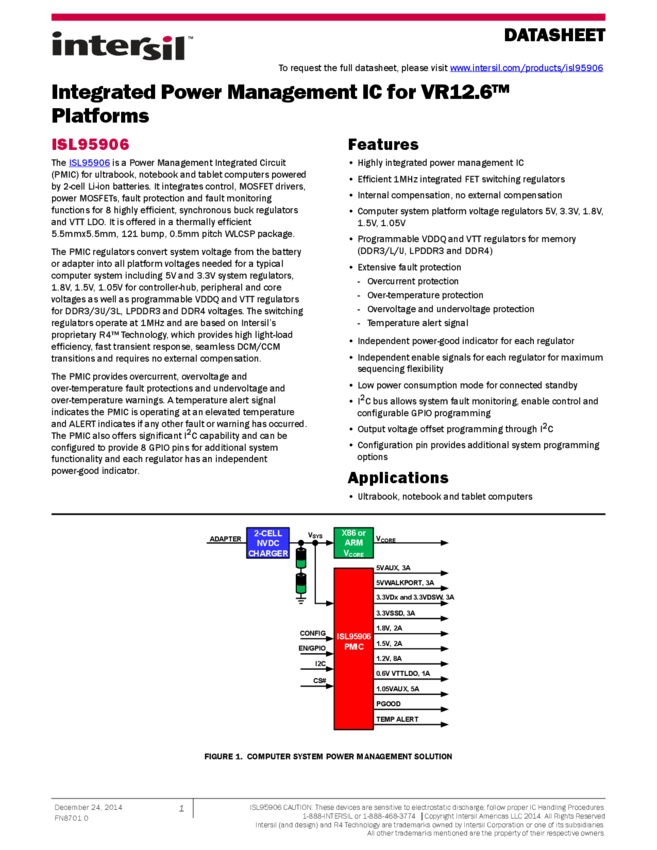 ISL95906 Integrated Power Management IC for VR12.6™ Platforms