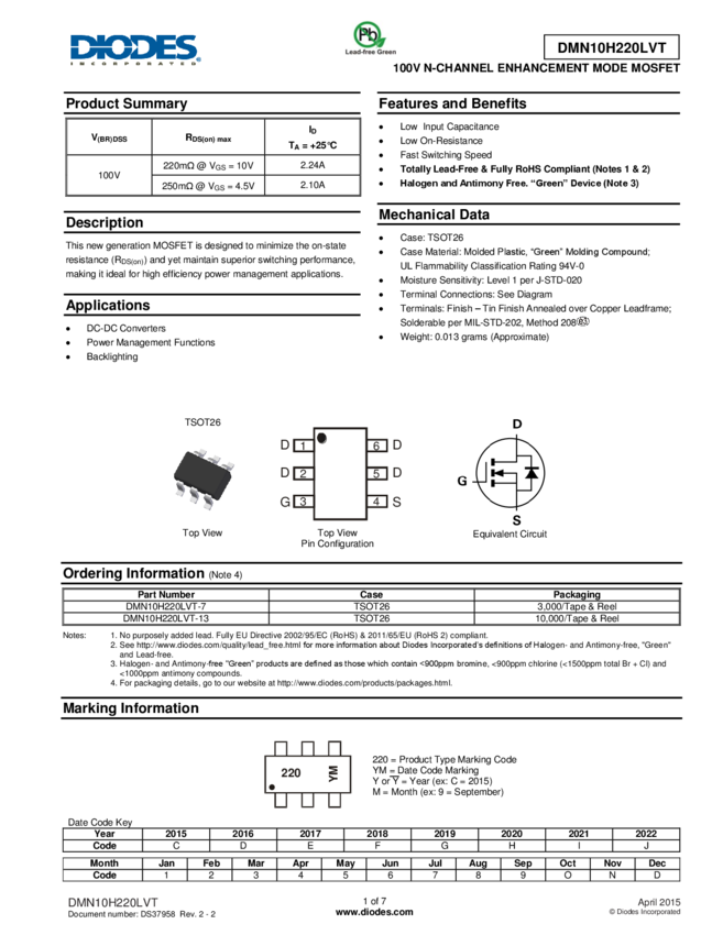 DMN10H220LVT 100V N-CHANNEL ENHANCEMENT MODE MOSFET