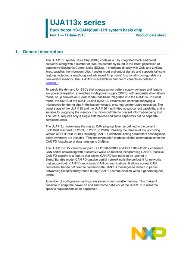 UJA113X Buck/boost HS-CAN/dual LIN system basis chip
