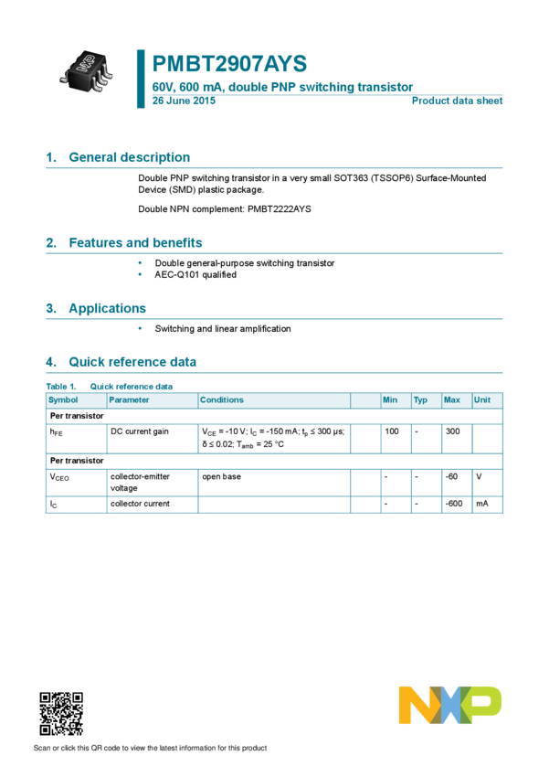 PMBT2907AYS 60V, 600 mA, double PNP switching transistor