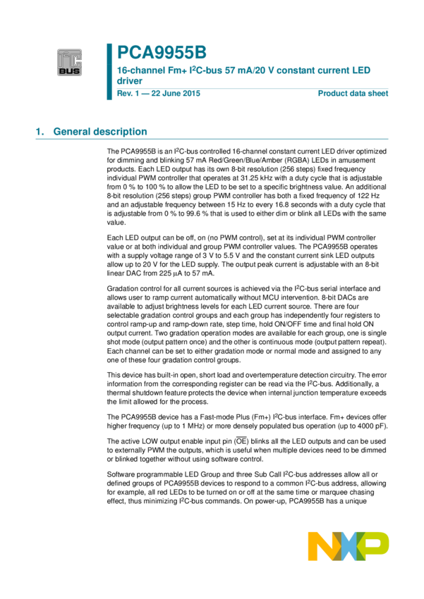 PCA9955B 16-channel Fm+ I2C-bus 57 mA/20 V constant current LED driver