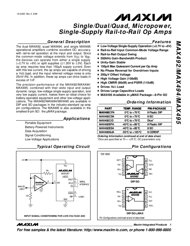 MAX492CSA, MAX492EPA, MAX494CPD, MAX494CSD, MAX495CPA, MAX495CSA