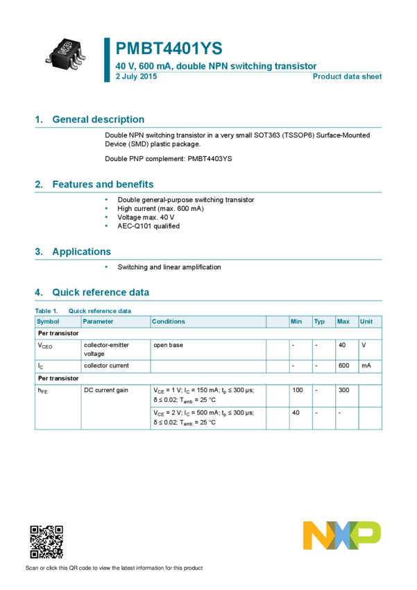 PMBT4401YS 40 V, 600 mA, double NPN switching transistor