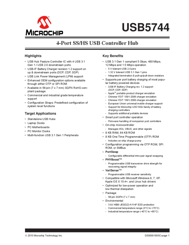 USB5744 4-Port SS/HS USB Hub Controller (08/06/2015)
