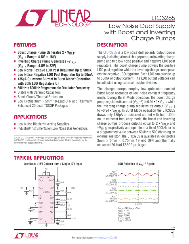 LTC3265 Low Noise Dual Supply with Boost and Inverting Charge Pumps