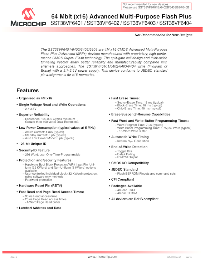 SST38VF6401 / 6402 / 6403 / 6404 Data Sheet (08/24/2015)