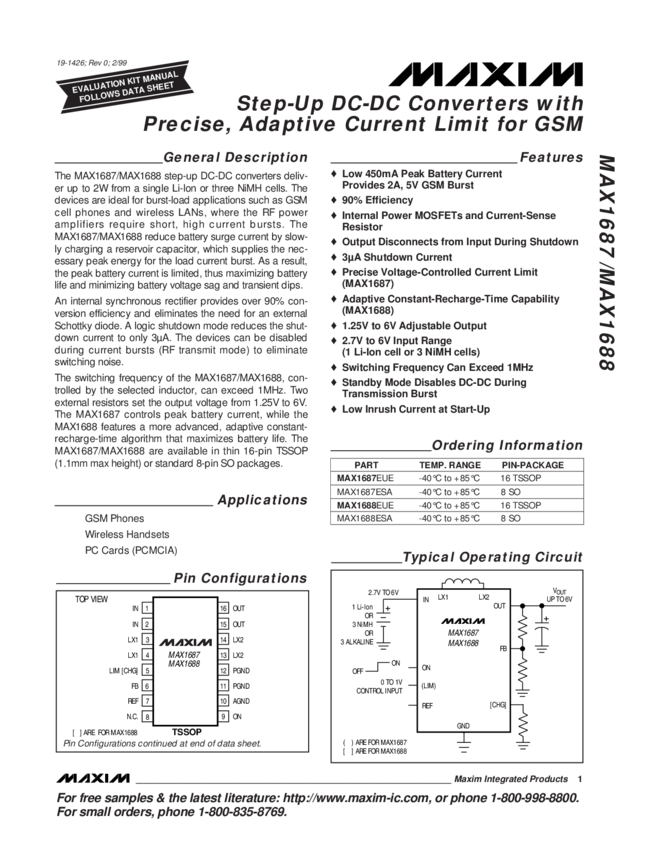 MAX1688 Step-Up DC-DC Converter with Adaptive Constant-Recharge-Time Capability