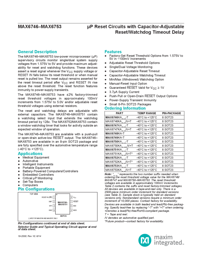 MAX6753 &#181P Reset Circuit with Fixed Reset Threshold, Window Watchdog Timer, and...