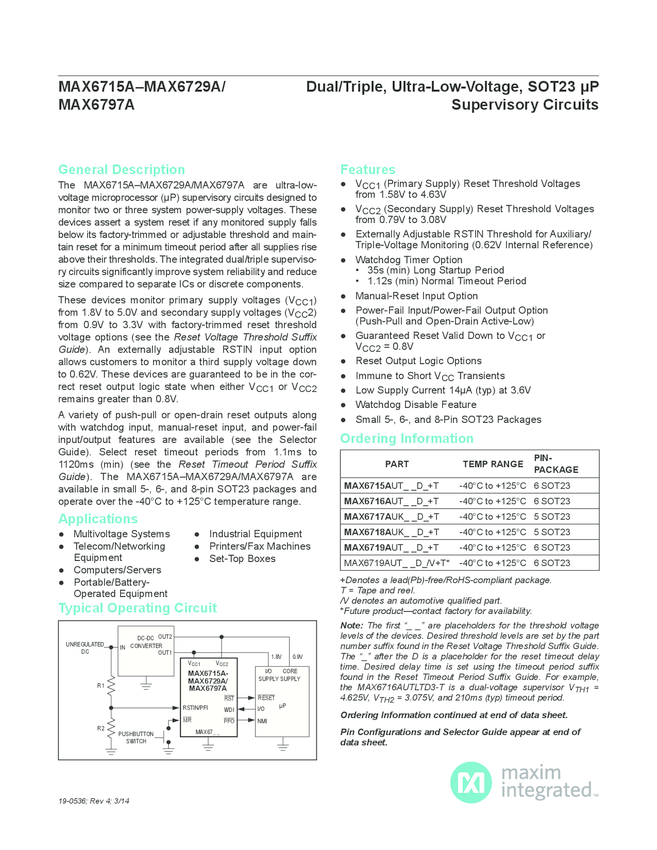 MAX6727A MAX6797A Dual Ultra-Low Voltage &#181P Supervisor with Manual Reset, Watchd...