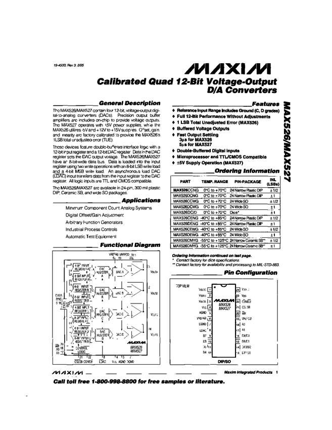 MAX527 &plusmn5V, Calibrated, Quad, Voltage-Output, 12-Bit DAC