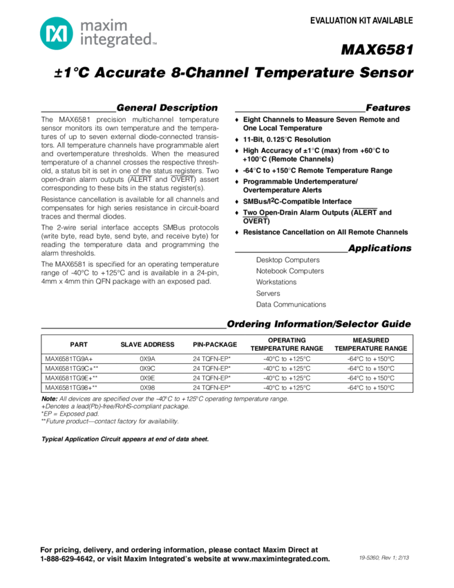MAX6581 &#1771&#176C Accurate 8-Channel Temperature Sensor