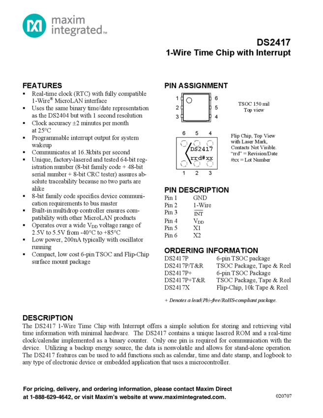 DS2417 1-Wire&#174 Time Chip With Interrupt