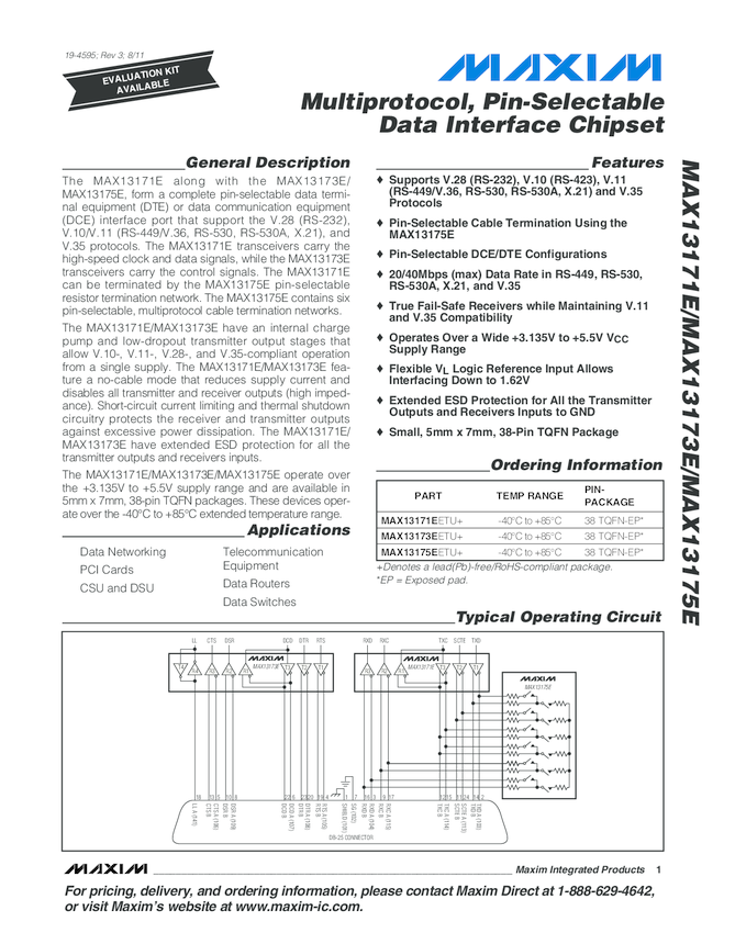 MAX13175E +3V/+5V Multiprotocol Software-Selectable Cable Terminator