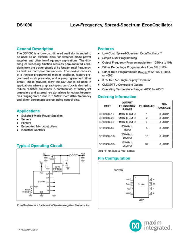 DS1090 Low-Frequency, Spread-Spectrum EconOscillator