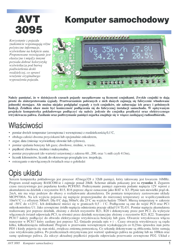 AVT3095/2 Komputer samochodowy z wyświetlaczem LCD, zielone znaki