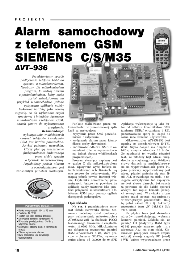 AVT936 A Alarm samochodowy z telefonem GSM SIEMENS C/S/M35 - płytka drukowana