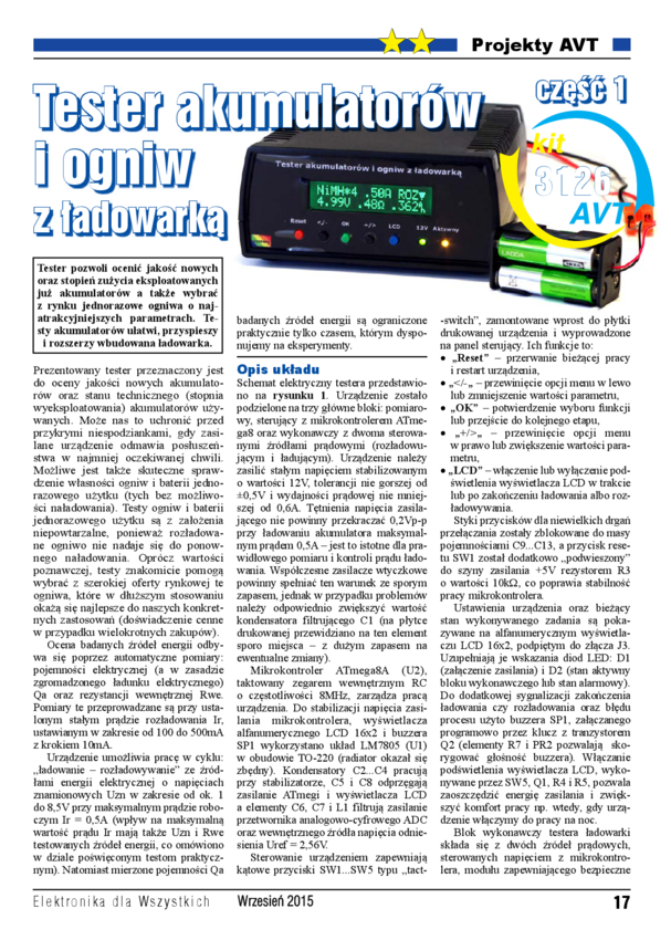 AVT3126 Tester akumulatorów i ogniw z ładowarką