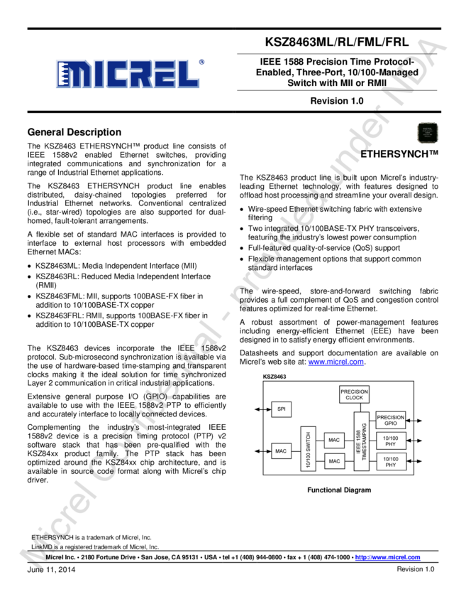 KSZ8463ML RL FML FRL Data Sheet 1.0 (Confidential watermark) (09/21/2015)