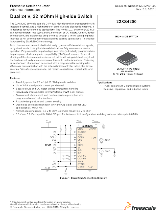 MC22XS4200, Dual 24 V, 22 mOhm High-side Switch